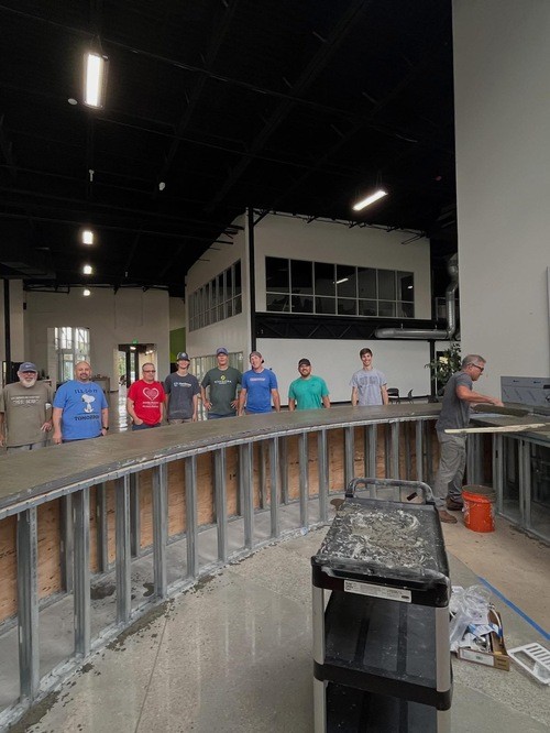 Significant progress has been made in developing our café area, with the concrete countertops now poured. Upcoming work includes polishing the surfaces, installing the backsplash, and adding cabinetry, appliances, and final finishes to create a welcoming and functional gathering space.