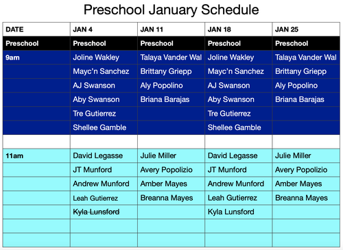 January Schedule